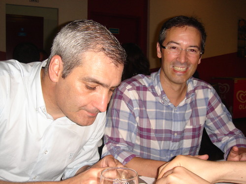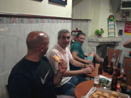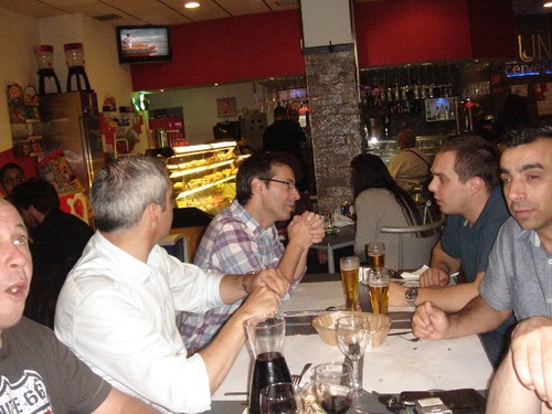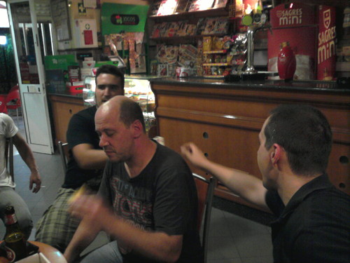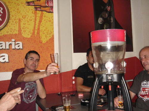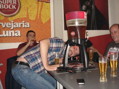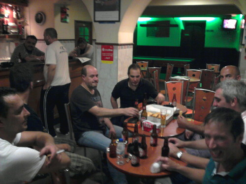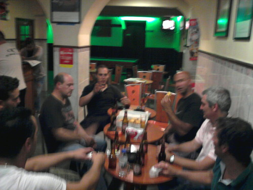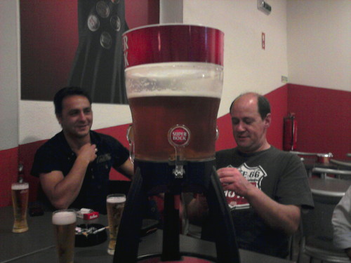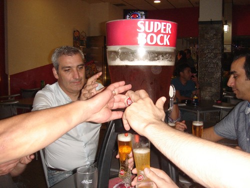 Olhando para as equipas adivinhava-se uma noite, digamos, dificil para os Brancos...mas até começaram melhor e estiveram a vencer por 2-0 mas entretanto os Pretos deram a volta ao texto e passaram a vencer por 4-3 e quando os Brancos fizeram a festa pelo empate conseguido a 4, os Pretos logo no pontapé de saída, num misto de aselhice para defender do Fernando e "nem que remates mais 100 vezes fazes outra ó Simão" os Pretos, como dizia, através de uma chapéu do Simão passam novamente para a frente: 5-4. Nesta altura pensei que o jogo tinha acabado ali e não mais os Brancos iriam conseguir recuperar animicamente daquele balde de água fria. Mas para grande surpresa minha enganei-me - sim, por raramente me engano - os Brancos continuaram a lutar e mais do que isso iam demonstrando melhor futebol; jogadas desenhadas quase sempre objectivamente, muitas trocas de bola entre todos os jogadores - o que para o Felipe parece que significa anti-jogo, na versão dele de futebol, é bom é quando se manda a bola lá para a frente para ele correr atrás dela feito doidinho ou então quando se chega depois de meio campo e se remata à baliza mesmo tendo um adversário a cobrir a trajectória da bola (e que acabará por levar com ela se levar a direcção da baliza...o que felizmente também é raro) - e a soltar, dizia, a bola no momento certo após a desmarcação do colega. Os Pretos, quando atacavam, optavam por ir trocando a bola de um lado para o outro tentando desposicionar a defesa adversária para então tentar alvejar a baliza, umas vezes com sucesso, mas na maior parte das vezes acabavam por errar um passe e sujeitavam-se à tentativa de marcar golo antes do meio campo dos Brancos (creio que tiveram sucesso uma ou duas vezes das seis ou sete que tentaram).